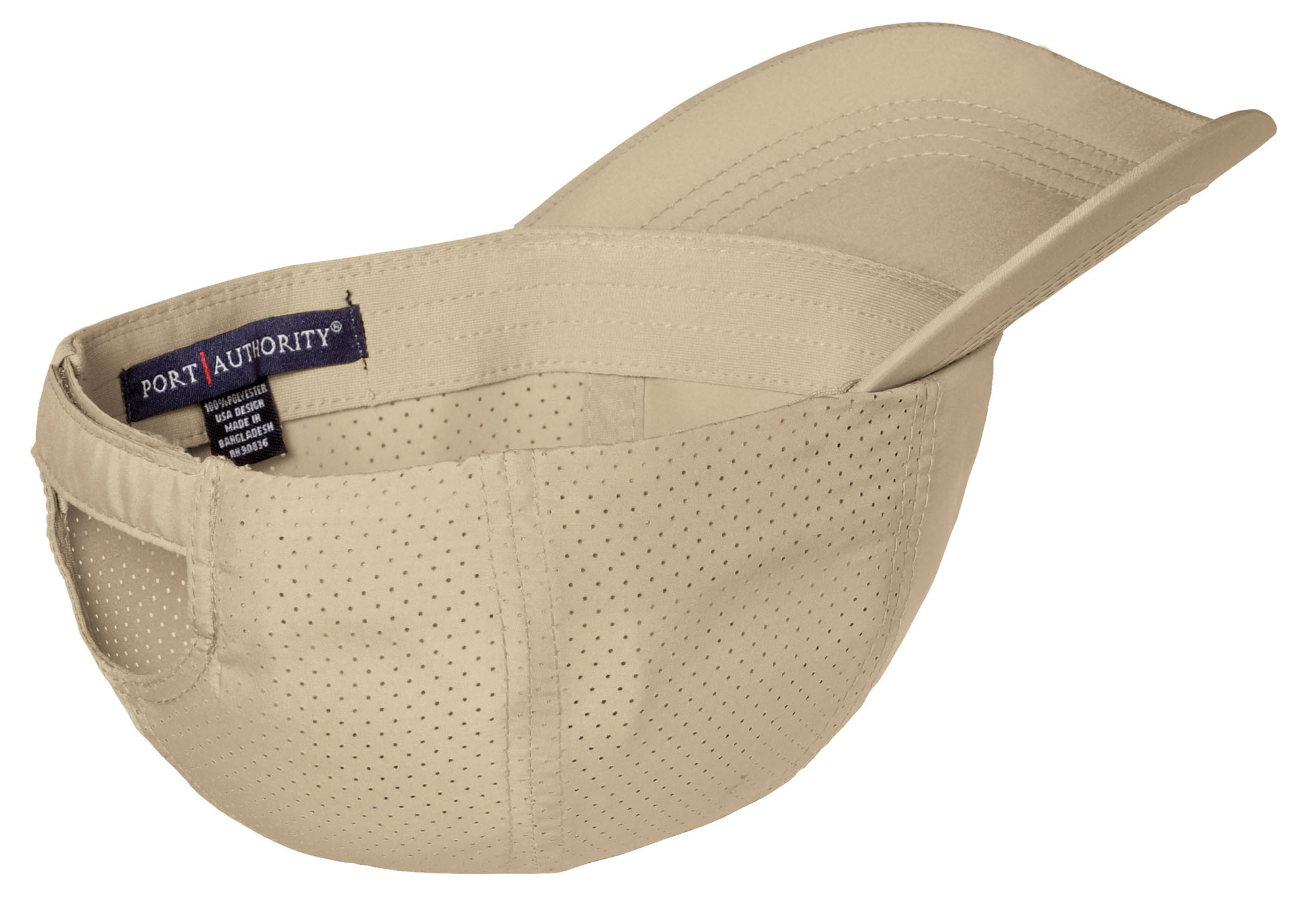 - This super lightweight cap—perfect for golf and other hot weather activities—has four perforated back panels for breathability and moisture-wicking performance.