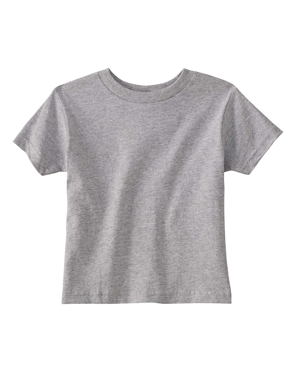 - 5.5 oz., 100% cotton jersey (Ash is 99/1; Heather is 90/10 cotton/polyester) ; Ash and White are sewn with 100% cotton thread; Ribbed collar; Shoulder-to-shoulder self-fabric back neck tape; Double needle sleeves and bottom hem; Side seam construction; EasyTearâ„¢ label; CPSIA Compliant tracking label in side seam; Machine washable/ tumble dry low; Fit: Toddler Unisex